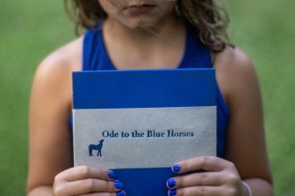 ©Anne Berry – Child in blue holding a copy of Berry’s new book, Ode to the Blue Horses