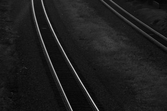 © Rebecca Kiger, East Palestine, One Year After the Derailment, A train approaches East Palestine October 7th, 2023.