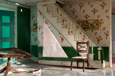 MANY ROOMS: These pictures are shot in a rusting tin dollhouse. This home serves as a generic domestic setting. For my purposes, it’s also a quirky enough stage-set to play the role of a heavenly home, the endpoint of life’s journey in any promise of an afterlife. I also find it to be a fitting laboratory for the working out of a host of problems inherent in a number of human ideals.