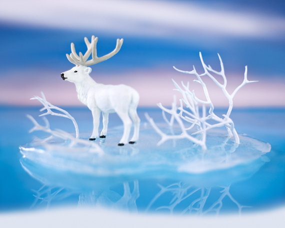 To photograph my vision of the north I borrowed a page from novelists and created a world. Winterdeep is made of painted backdrops, sculpted ice, dye, customized toys, and a few other odds and ends. Digital magic circa 1995 provides visible breath and enhances the northern lights. I invite you to make Winterdeep a landscape for your own thoughts.