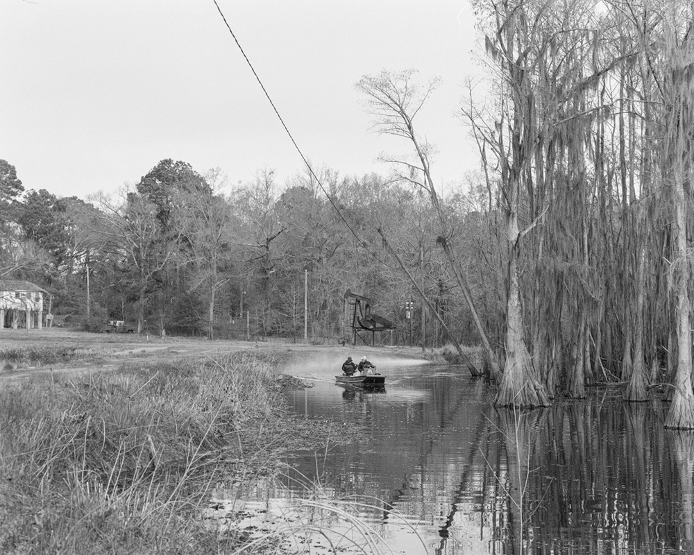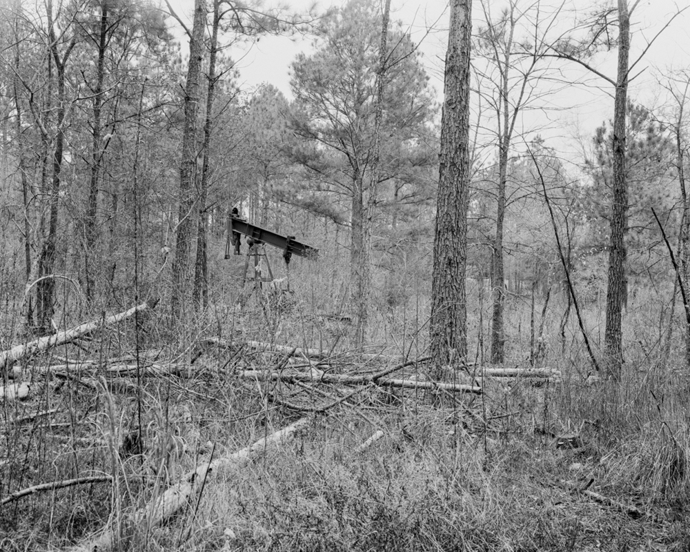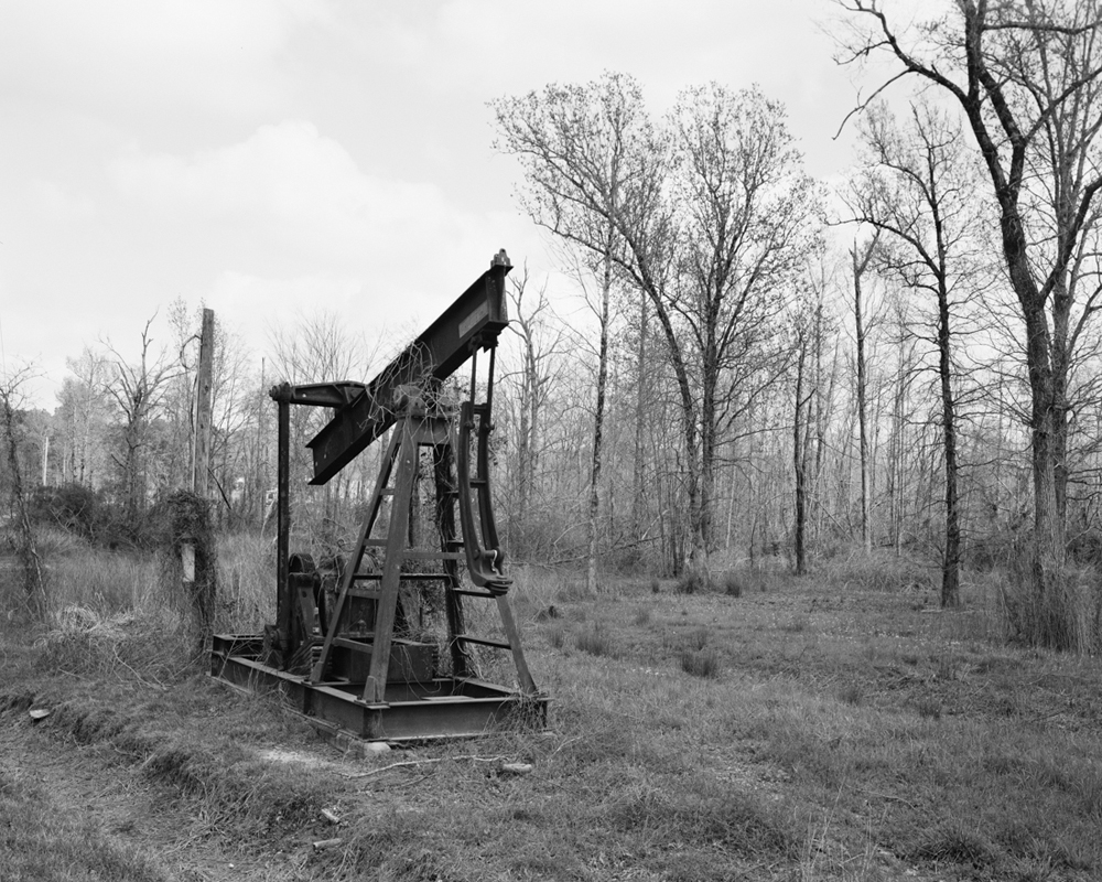 My images respond to this lack, and reveal the aftermath of oil extraction activities on land and livelihoods, display the interface between industrial and residential spaces, and the arc of boom economies to their eventual decline. Through my work in northwestern Louisiana, I use large-format photography to consider the invisibility and hypervisibility of oil and gas development and the environments it reshapes.