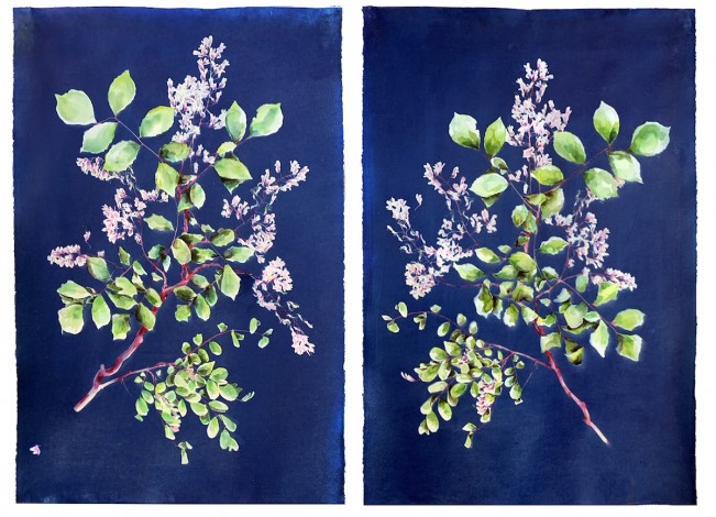 ©Brett Day Windham, Black Locust Diptych, 2021, Cyanotype & watercolor on hot press cotton rag, 26.5 x 40 inches each