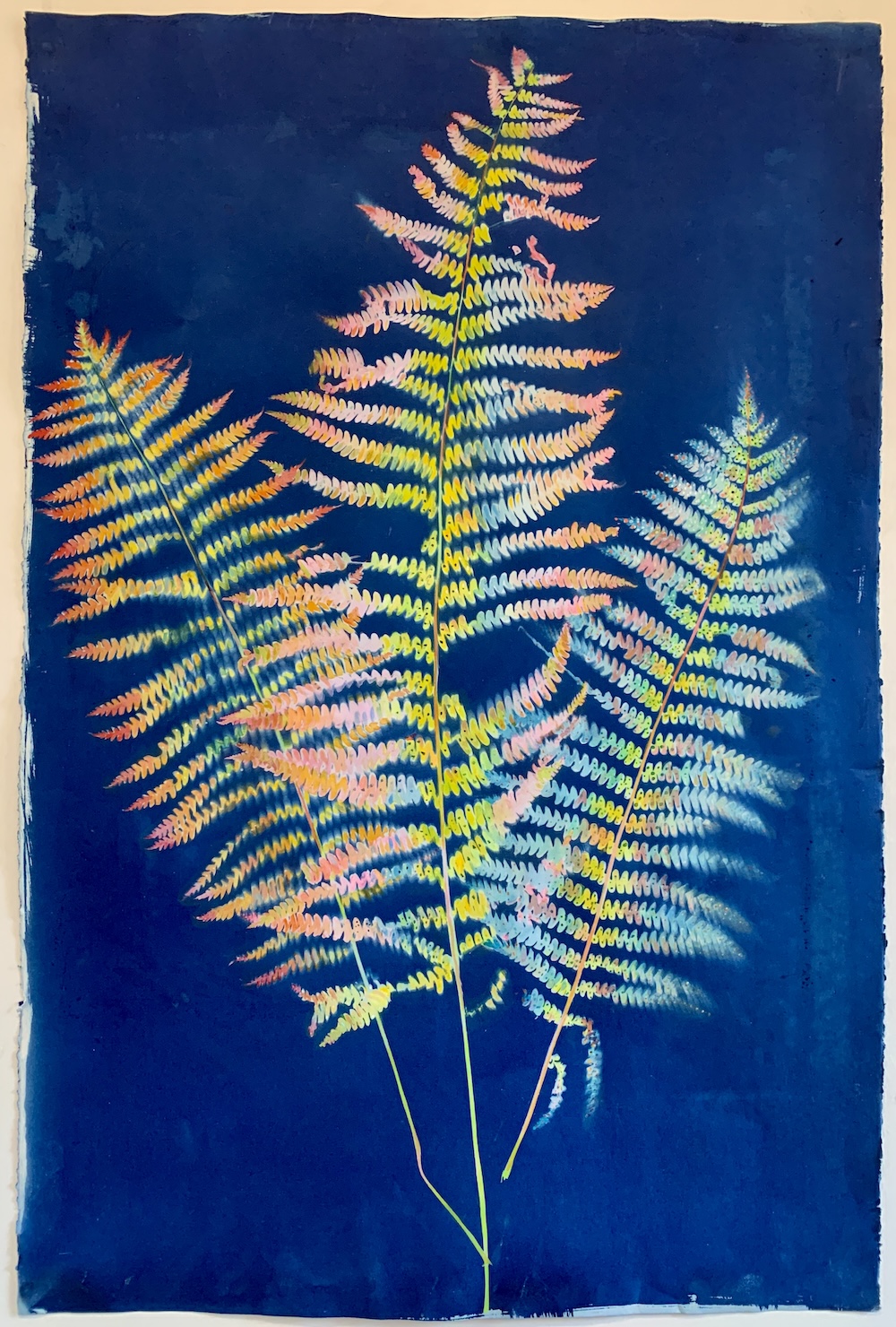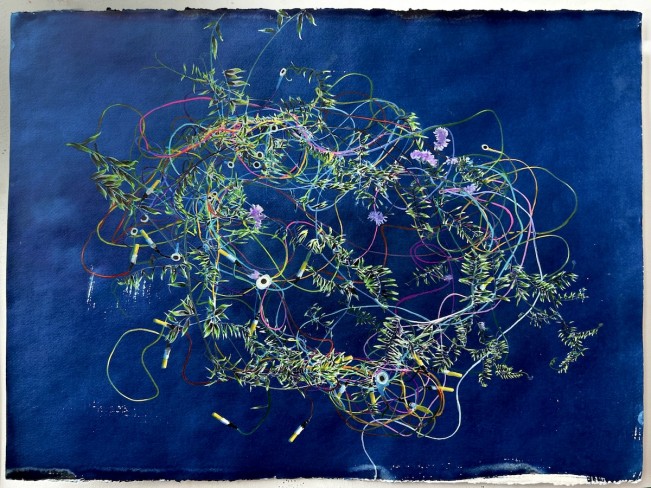 ©Brett Day Windham, Electrovetch, 2025 Cyanotype and watercolor on Strathmore hot press, 22 x 30 inches