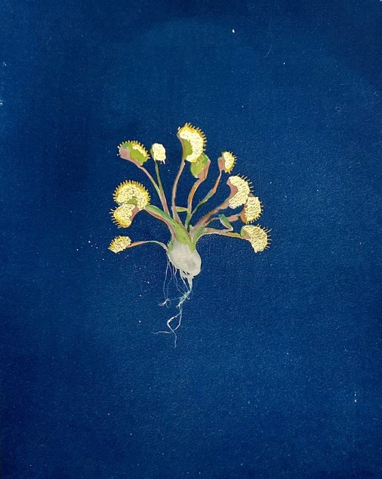 ©Brett Day Windham,Venus, 2023, Cyanotype, pen, watercolor, and gold leaf on Strathmore hot press, 9×12 inches