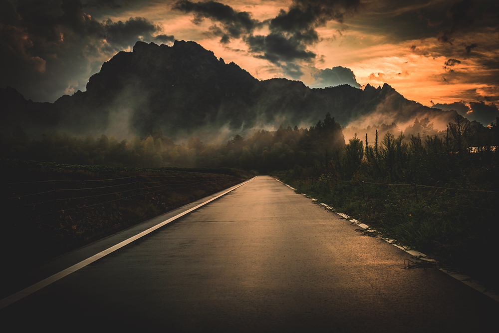 ©Takeshi Ikuta, a road leading to Mount Myogi, a nearby mountain close to Karuizawa, photographed after a sunset rainstorm.