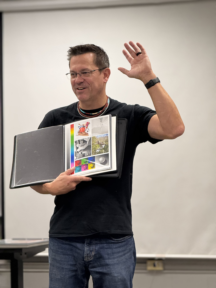 A working artist and master printer, Eric bridges historical and modern techniques. He co-authored *Both Sides of the Table: Photography Portfolio Do’s and Don’ts* to democratize industry knowledge and explores niche methods like kallatype printing. Students describe his teaching as *“a gateway to areas I never knew existed”, highlighting his integration of professional practice into coursework. His studio becomes a hub for experimentation, where he mentors students and alum in bookbinding, alternative processes, and even social documentary projects.