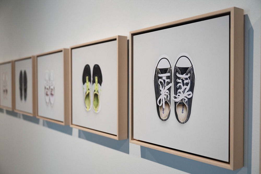 The Uvalde photographs answer these questions, even without the artist’s statement about the work; the black and white portraits contrasted with the colorful children’s shoes are appropriately jarring yet tender – the family’s have raw, very present emotions while the shoes, in color, are tenderly preserved in the present with life still in them. The pairings make sense at a gut level but also allow you to go deeper emotionally and intellectually.