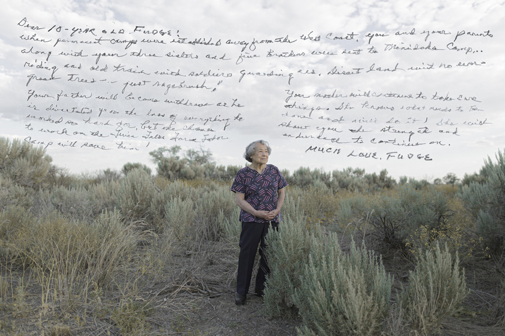 ©Haruka Sakaguchi, Fujiko Gardner was one of 120,000 people of Japanese ancestry who were forcibly displaced and incarcerated during World War II. She and her family were removed from their home in Fife, WA and incarcerated at Minidoka. Fujiko revisited her former camp and wrote a letter to her younger self when she was incarcerated.