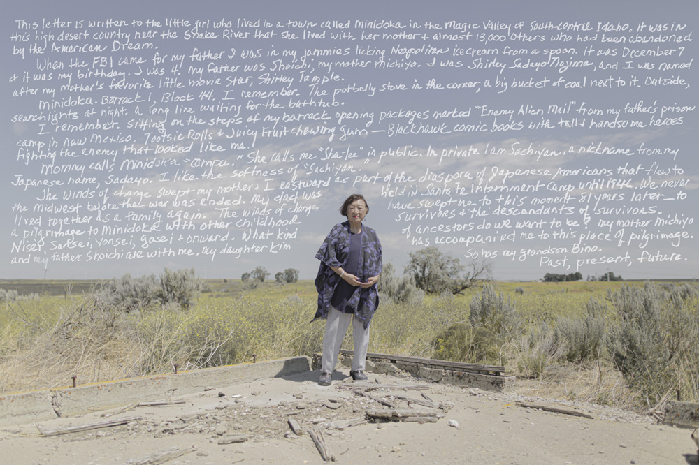 ©Haruka Sakaguchi, Nikki Nojima Louis was one of 120,000 people of Japanese ancestry who were forcibly displaced and incarcerated during World War II. She and her family were removed from their home in Seattle, WA and incarcerated at Minidoka. Nikki revisited her former camp and wrote a letter to her younger self when she was incarcerated.