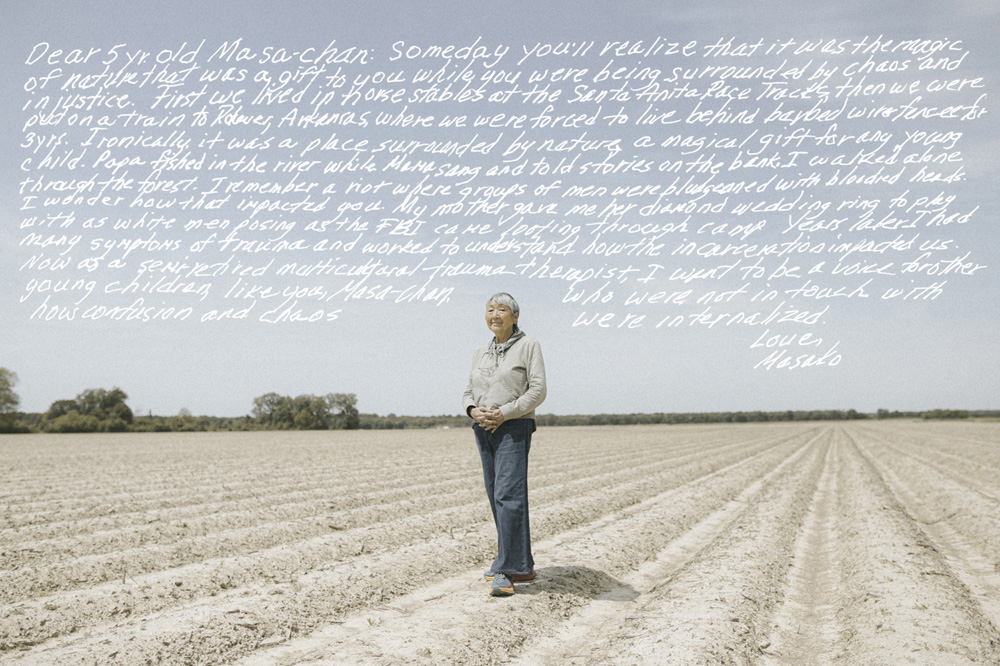 ©Haruka Sakaguchi, Masako Guthrie was one of 120,000 people of Japanese ancestry who were forcibly displaced and incarcerated during World War II. She and her family were removed from their home in Los Angeles, CA and incarcerated at Rohwer. Masako revisited her former camp and wrote a letter to her younger self when she was incarcerated.