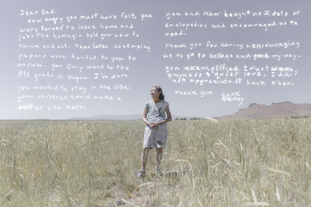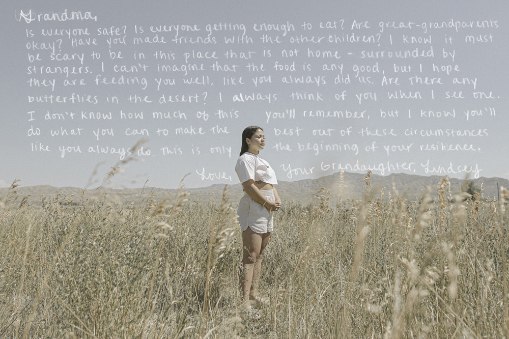 ©Haruka Sakaguchi, Lindsey Dopke’s grandmother was one of 120,000 people of Japanese ancestry who were forcibly displaced and incarcerated during World War II. Her grandmother was removed from her home in Los Angeles, CA and incarcerated at Heart Mountain. Lindsey revisited her grandmother’s former camp and wrote a letter to her in commemoration.