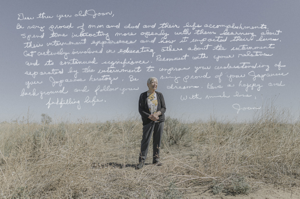 ©Haruka Sakaguchi, Joan Pang was one of 120,000 people of Japanese ancestry who were forcibly displaced and incarcerated during World War II. She and her family were removed from their home in Los Angeles, CA and incarcerated at Amache. Joan revisited her former camp and wrote a letter to her younger self when she was incarcerated.