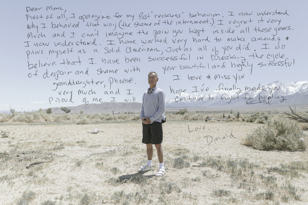 ©Haruka Sakaguchi, Donald Kunitomi’s mother was one of 120,000 people of Japanese ancestry who were forcibly displaced and incarcerated during World War II. His mother was removed from her home in Los Angeles, CA and incarcerated at Manzanar. Donald revisited his mother’s former camp and wrote a letter to her in commemoration.