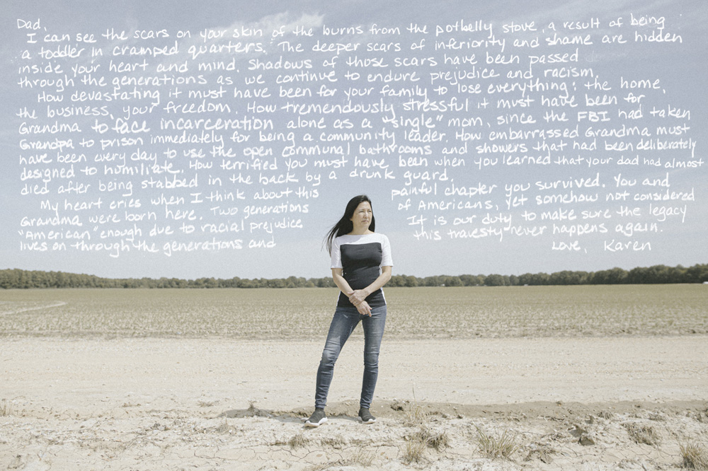 ©Haruka Sakaguchi, Karen Ideno’s father was one of 120,000 people of Japanese ancestry who were forcibly displaced and incarcerated during World War II. Her father was removed from his home in San Francisco, CA and incarcerated at Rohwer. Karen revisited her father’s former camp and wrote a letter to him in commemoration.