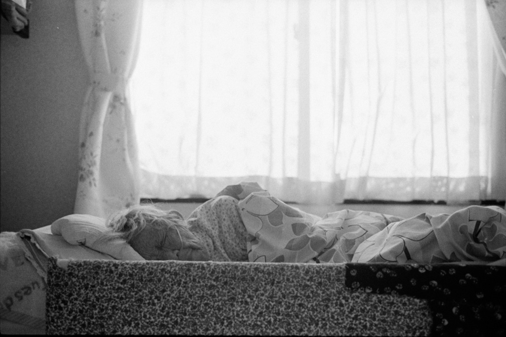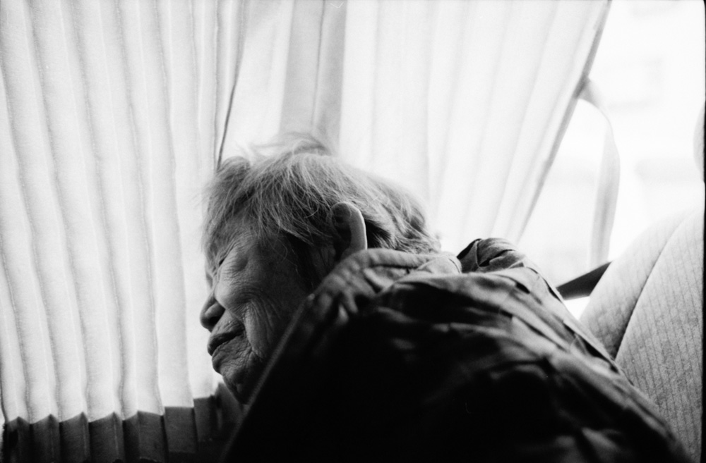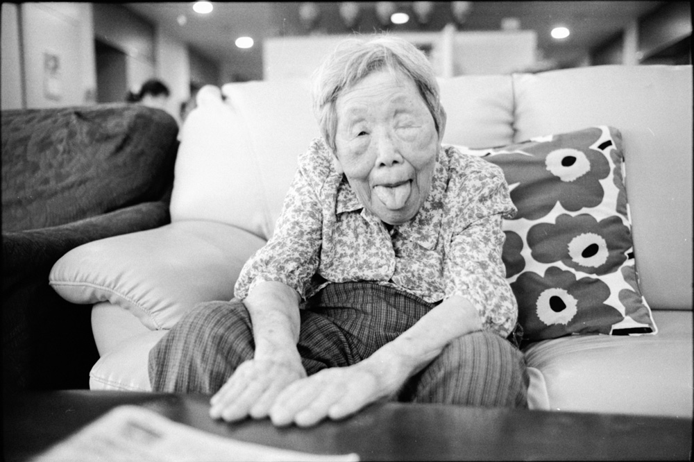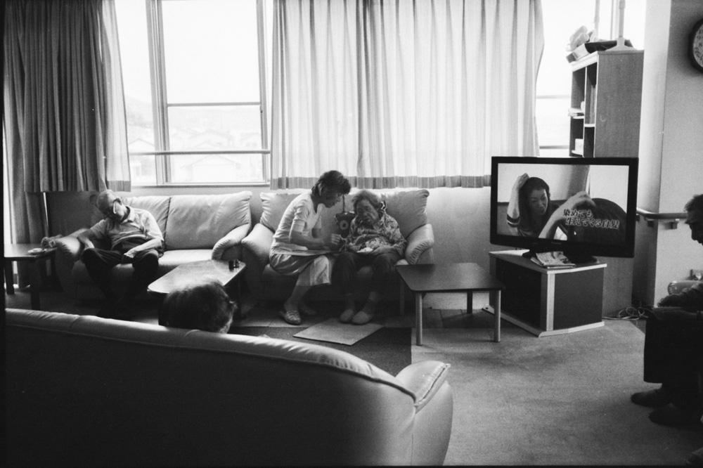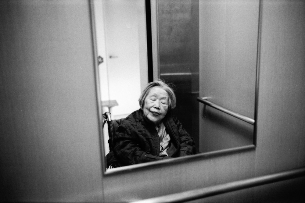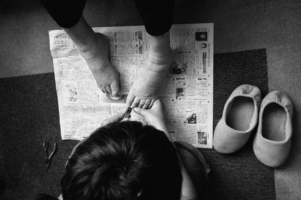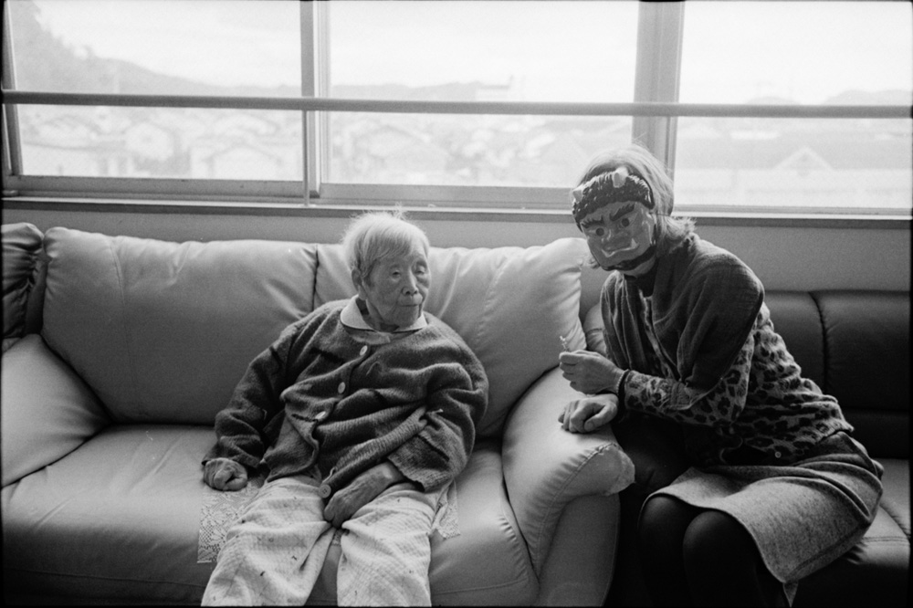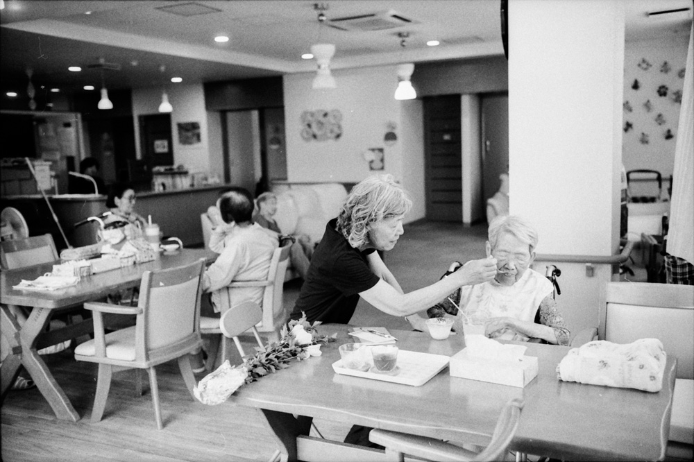 In 2012, Tsuyajyo moved to a care home where she would stay for the next seven years. I started photographing this series around that time as well. While my mother passed her responsibilities to the caregivers, she would visit her mother every few days to spend half an hour there, as if it were her duty, saying, “I just wish for her to laugh once a day.” Tsuyajyo gradually became calmer, and singing her original lines became her favorite activity. I was often amazed by her laughter. I was surprised when she gripped my hand more strongly than I expected, saying, “I want to grip your hand tightly until my blood vessels burst!”