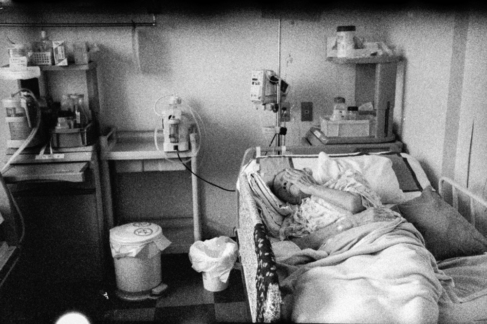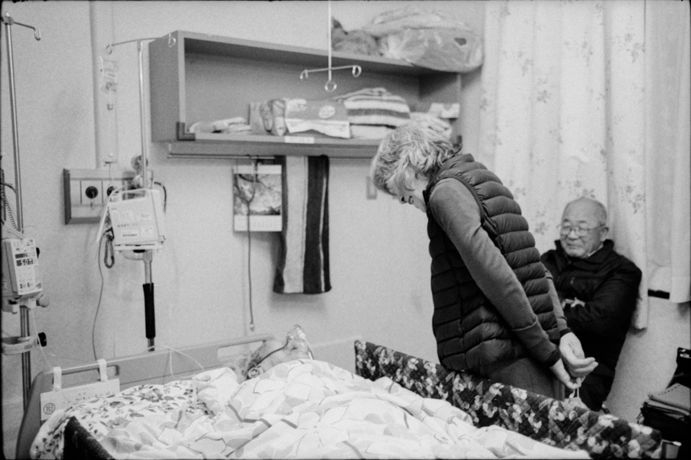 My grandfather became sick and started staying in the hospital when I was a student. On one of his last days, I visited him and found him tied to the bed in a sterilization room after he had tried to remove a tube attached to his throat. He was still trying to move and staring at us, even though he could no longer make a sound. “He is not the grandpa you know; maybe you shouldn’t see him anymore.” Tsuyajyo told me.