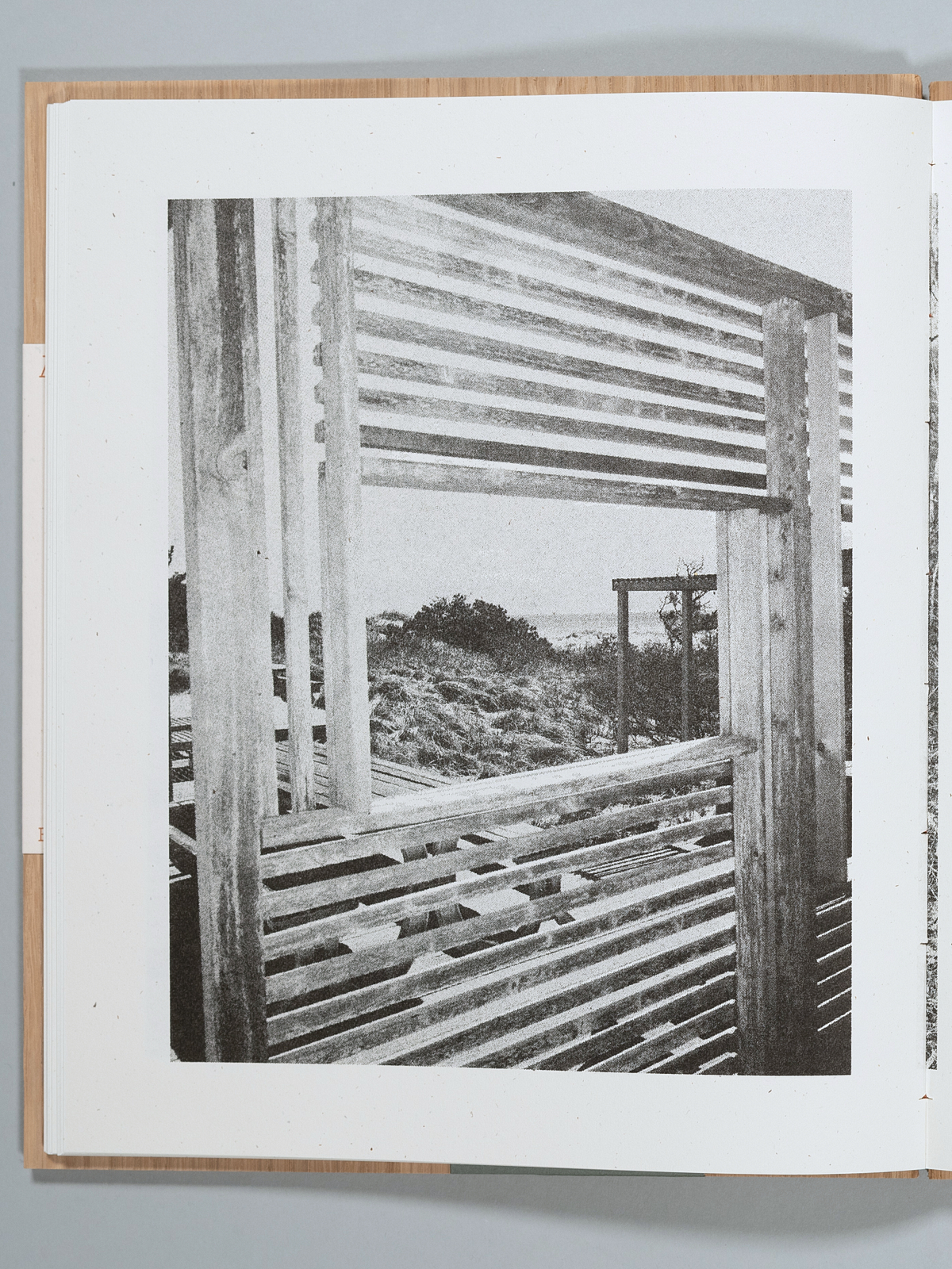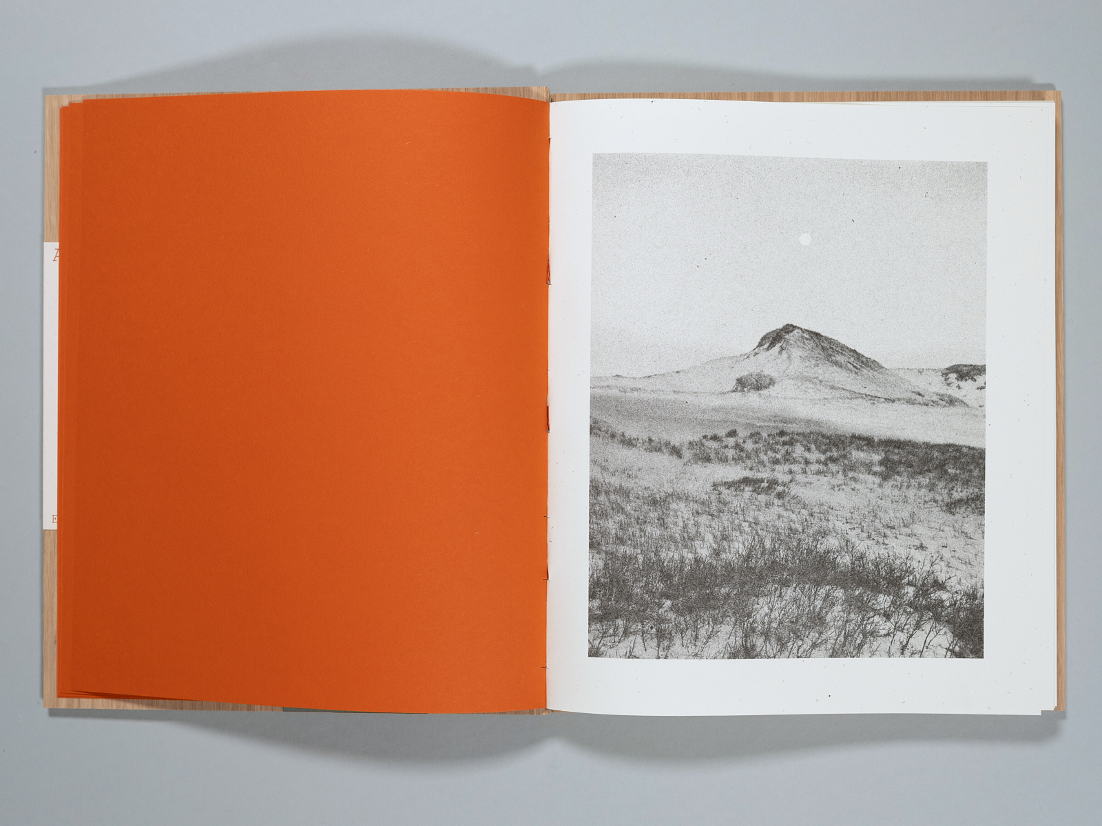 Complimenting the content, the printing and book design choices elevate the project to incredibly high heights, and are what make this something truly special. The texture created through the photograph’s natural grain, paper choices, and riso printing technique produces a wonderfully grainy quality, perfectly mirroring the sand-laden landscape of Cape Cod. Which, alongside the orange pages, thread, and wooden covers, encapsulates the aesthetics of the book’s subject matter in quite an extraordinary way.