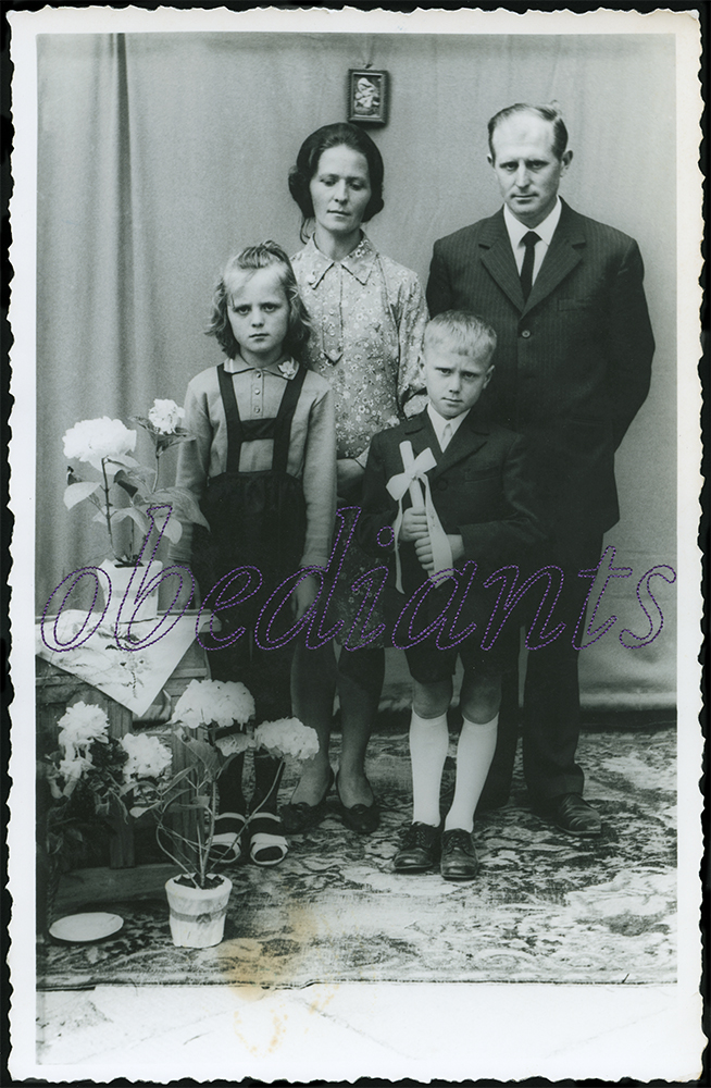The photographs span the decades of popular black and white photography, chronicling people, places and times. While studio portraits tend toward intentional self-representation, family snapshots often capture random, unintended elements. Obituaries, written by loved ones, are a form of familial self-representation and collective memory. Their shared anecdotes and mottoes highlight noteworthy aspects of an individual’s life.