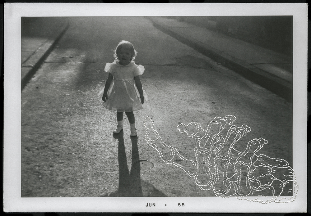 All this led to my fascination with early and mid-twentieth century vernacular photographs; the found family photo became my medium in 2002. Nan Goldin wrote, “The snapshot (is) the form of photography that is most defined by love. People take them out of love, and they take them to remember — people, places, and times. They’re about creating a history by recording a history.”