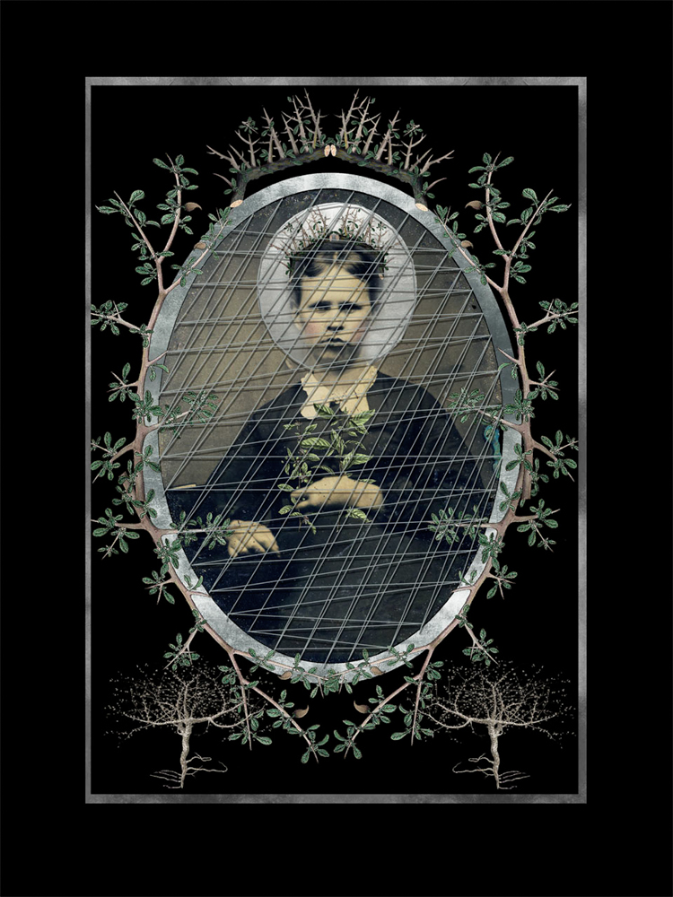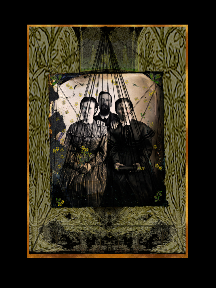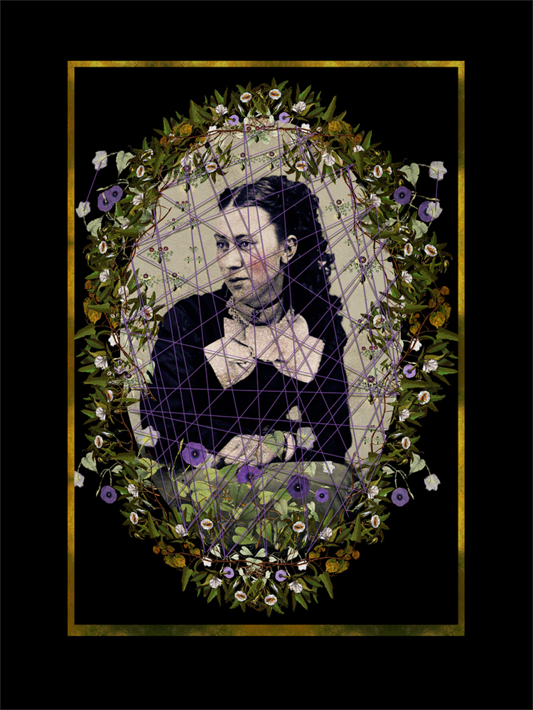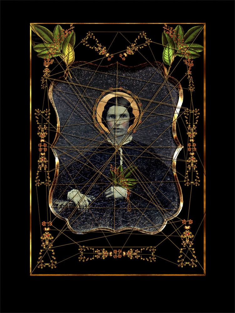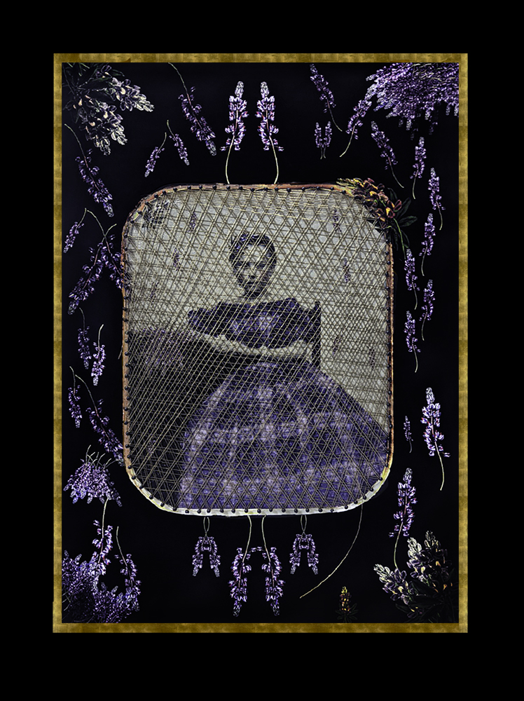 Today, I’m delighted to discuss Leslie Sheryll’s project, “HERbarium-HER Choice”. Sheryll’s images draw upon botanicals historically used for abortion or birth control, combined with found tintype portraits from over one hundred years ago. She creatively pins cords over the prints, creating 3-dimensional objects with a strong message about reproductive rights. I was fascinated with her approach to this subject and she graciously agreed to be interviewed to discuss the project. – Marcy Palmer