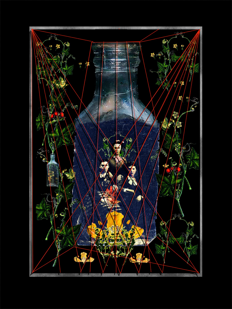 LS: Thank you for the compliment. I don’t specifically recall coming up with this idea, I work intuitively. The cord and pins are physical, they create an added emotional layer of entrapment.