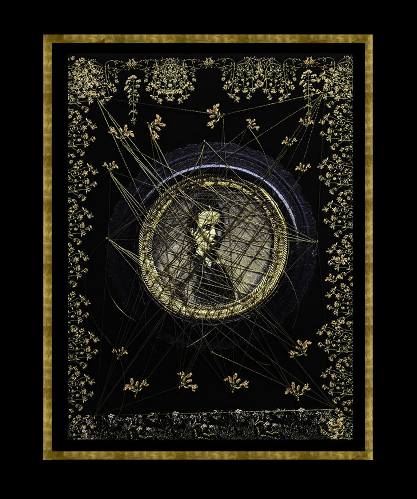 MP: You use different materials and imagery in beautiful and unique ways. How did you decide to bring the 3-dimensional cord and pin elements to the 2-dimensional images?