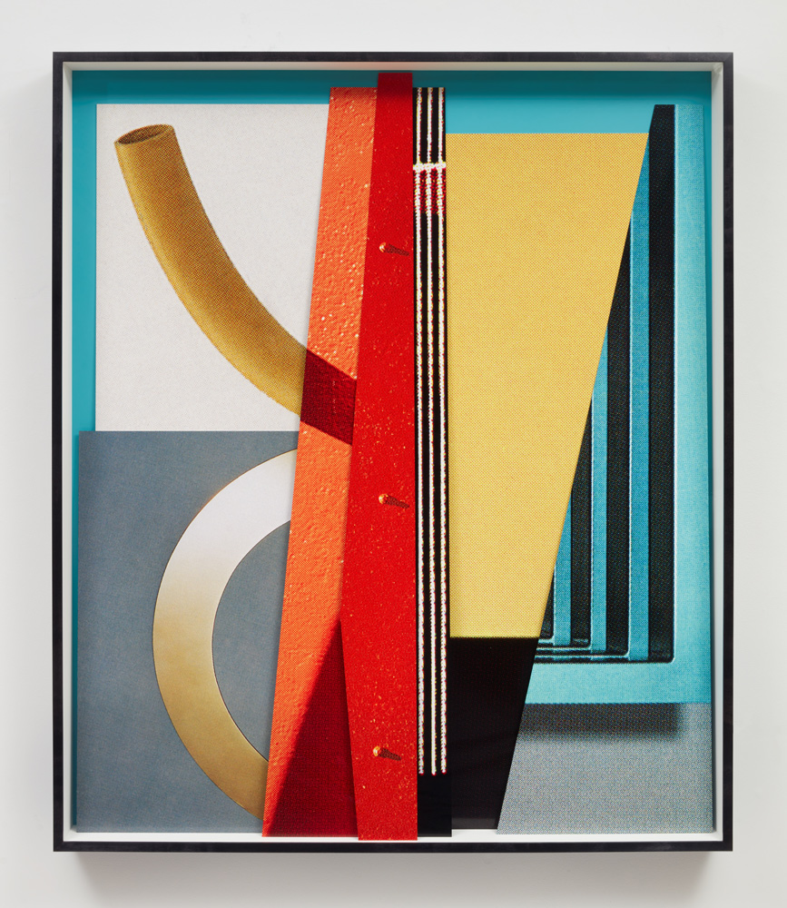 Surface capital, 2022. Dye sublimation prints on aluminum and latex paint. (71 1/4 × 60 1/4 × 5 3/4 in.) Courtesy of the artist and Sikkema Malloy Jenkins, New York. © Erin Shirreff