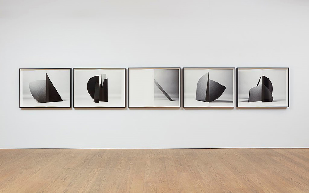 The artist began her practice as a sculptor and has created a cohesive visual vocabulary inspired by 20th-century modernism. She uses this language to question the nature of how we experience objects, how they are transformed by photography and re-contextualized in time. Gaylord explains that the artist “scours art books published decades ago, when the abstract forms of modernist sculpture entered the canon of art history. [Shirreff] uses these historical reproductions as source material to seek ‘the possibilities in new translations and confusion.’”