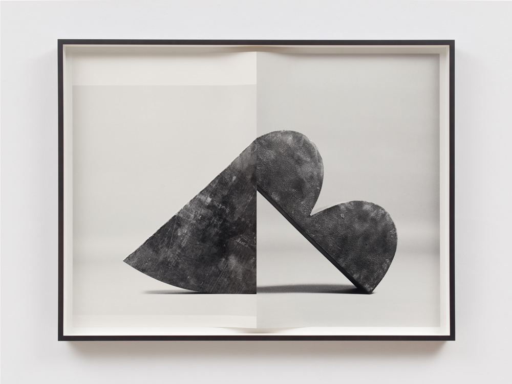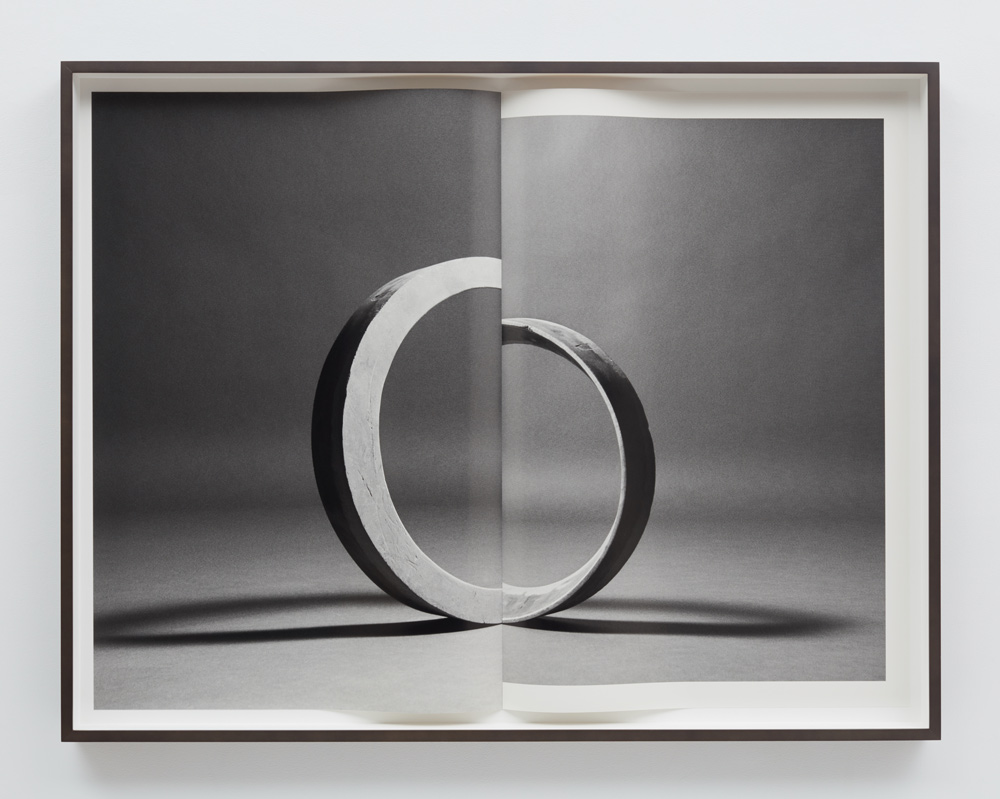 Monograph, 2017, a series of five inkjet prints, represent Shirreff’s observations regarding the fragmentary, sometimes deceptive nature of reproduction. Gaylord explains that although the photographs might at first seem to be unbound publication spreads, closer inspection reveals that each print actually combines two separate images, some of which seem to complete the sculpture of a separate photograph.