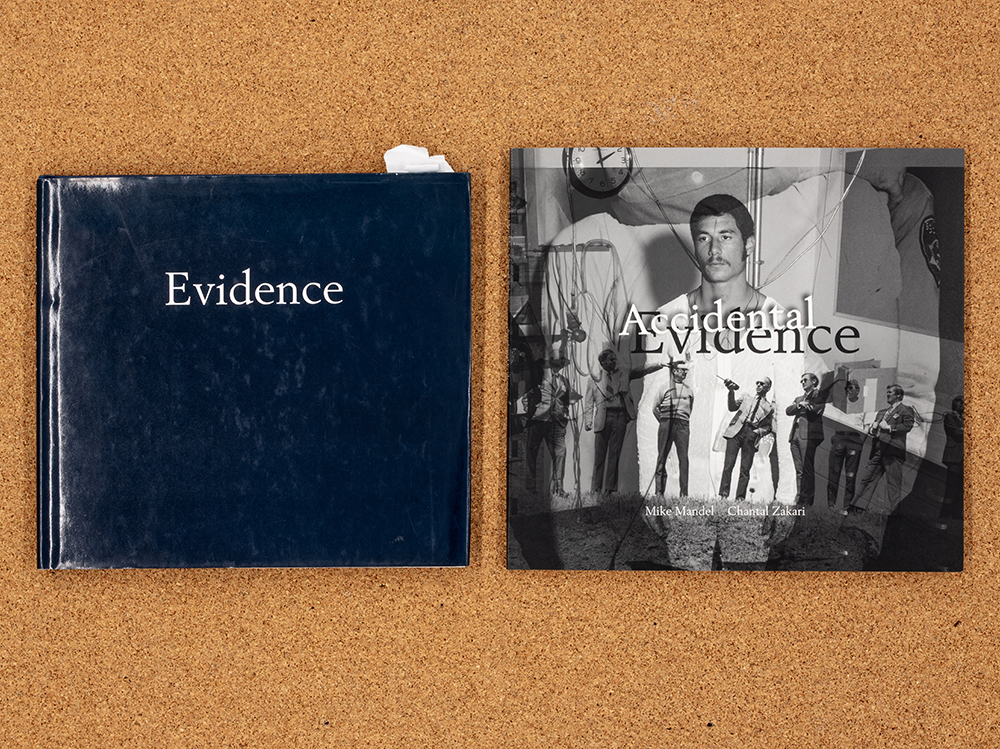Evidence (1977) by Larry Sultan and Mike Mandel next to Accidental Evidence (2025) by Mike Mandel and Chantal Zakari