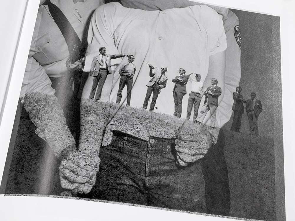 Images invade one another, ruthlessly asserting their presence, and invite viewers to navigate the relationships between foreground and background, as well as vertical and horizontal planes. This visual complexity reflects the present moment, in which content is continually recycled, recontextualized, and repurposed to uphold systems of power. The warmth of Rafi’s landscapes contrasts sharply with the colder, harsher imagery of Evidence, creating a tension that reinforces the book’s meditation on time, memory, and societal inertia.
