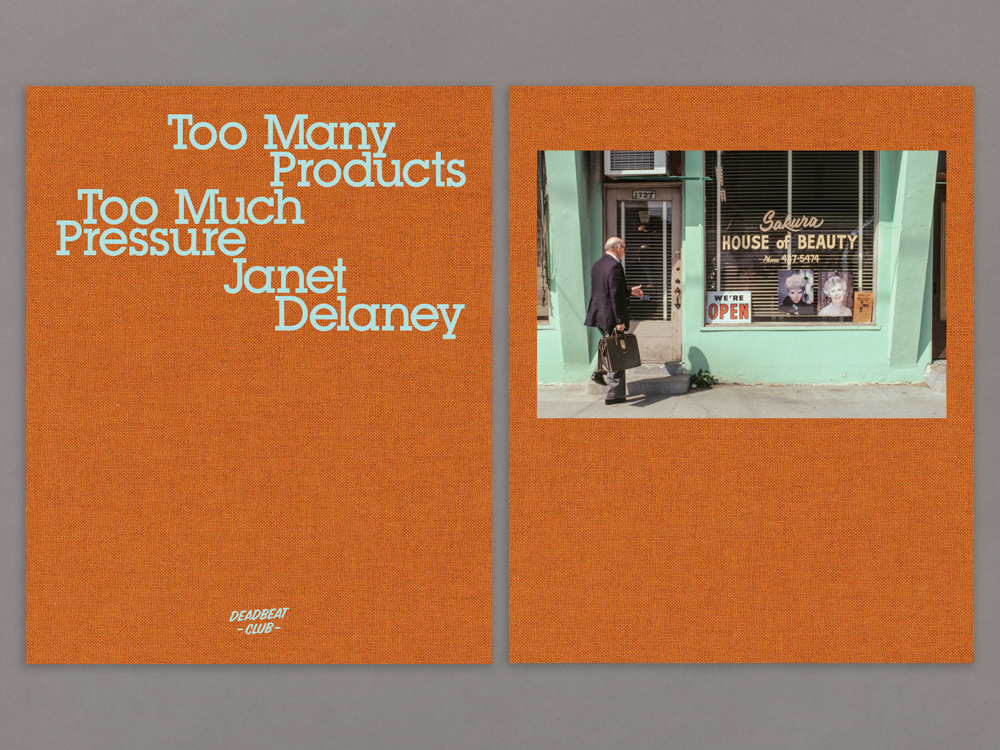 Too Many Products Too Much Pressure by Janet Delaney is available from Deadbeat Club and includes “Life of a Salesman” essay by the artist Janet Delaney and “Wife of a Salesman” essay by the artist’s mother Connie Delaney. The book is also available in a limited special edition with custom slipcase and signed print.