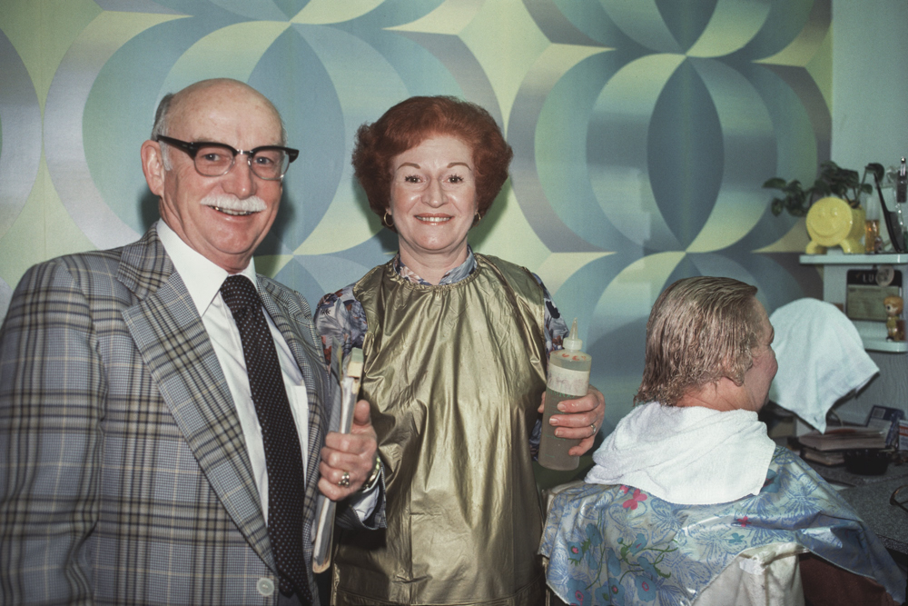 The camera can usually allow me to step outside the frame and watch the action without being a player but this setting was more complex. I was fluctuating between the role of the dutiful daughter coming to meet Dad’s clients and being the photographer looking with a critical eye at how he earned a living. I had always questioned the value of store bought beauty, make up, permanent waves, dyes and bleaches. I rejected all of it, even the lipstick. It all felt so superfluous. This was an era of second wave feminism and I embraced the “natural” look to a fault. I was living in a very different cultural time zone from my father. Yet as I watched him work his magic with these women, many of whom he had known for years, the curtain was drawn back and I was able to appreciate his skill and dedication as well as the role beauty shops played in these women’s lives. After I finished sorting and editing all of the material I had gathered I felt an imprint of my dad buried deep into my consciousness. There was a new level of closeness between us now that I had internalized his work world.