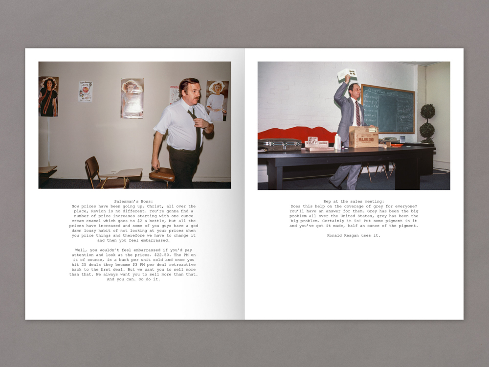 JD: I had studied visual anthropology with John Collier as an undergraduate. The idea of close observation of daily life fascinated me. I had just started the grad program at San Francisco Art Institute when a fellow student, Connie Hatch, made a two projector slide show with sound about her brother who was a lineman in the suburbs of Fort Worth. This format inspired me to do this project on my dad which was a mix of cool observation of the business of beauty and an intimate tale of my father and his work. When I added to this my compulsion to focus on the nexus of change, those delicate moments when one thing is being transformed into another, going home to photograph my father just weeks before he retired felt like a great opportunity to use this personal story to talk about much larger issues of work, beauty, family and the way corporations were encroaching into our daily lives.