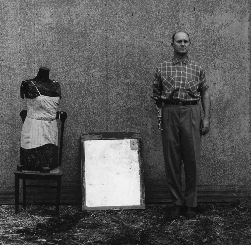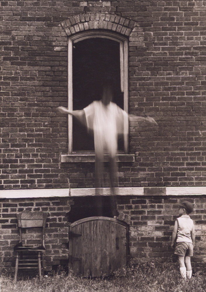He is best known for his staged scenes that suggest absurd fantasies, played out in the dilapidated houses and banal suburban environs of Lexington. Often featuring his family as actors and including props such as masks and dolls, the scenes reveal his search for inner truths among the ordinary. Though he wasn’t unknown in his lifetime — he exhibited, lectured and showed his work regularly throughout the 1960s — he worked both geographically and conceptually outside of the mainstream of photographic modernism, and it wasn’t until after his death that his reputation began to grow steadily.