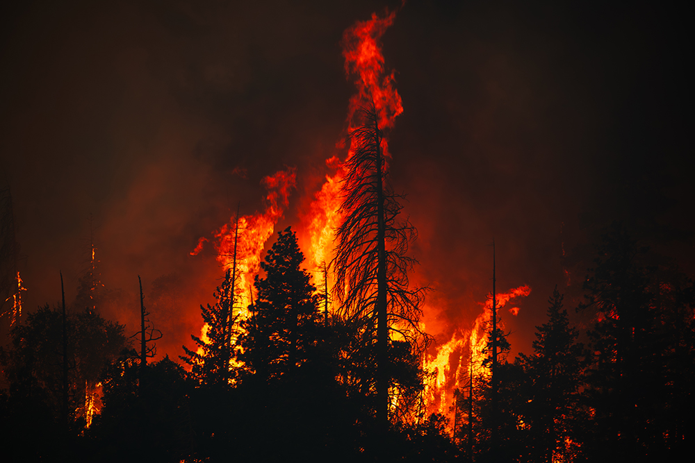 ©Sean Stanley, Darkness, Photographed during the French Fire in August 2021, this image captures the head of the fire continuing to burn aggressively as night fell. After an active day of fire behavior, the blaze maintained intensity into the evening, consuming both live and dead vegetation. The photograph documents the persistence of large wildland fires beyond daylight hours, revealing a scene that was both destructive and hauntingly beautiful.