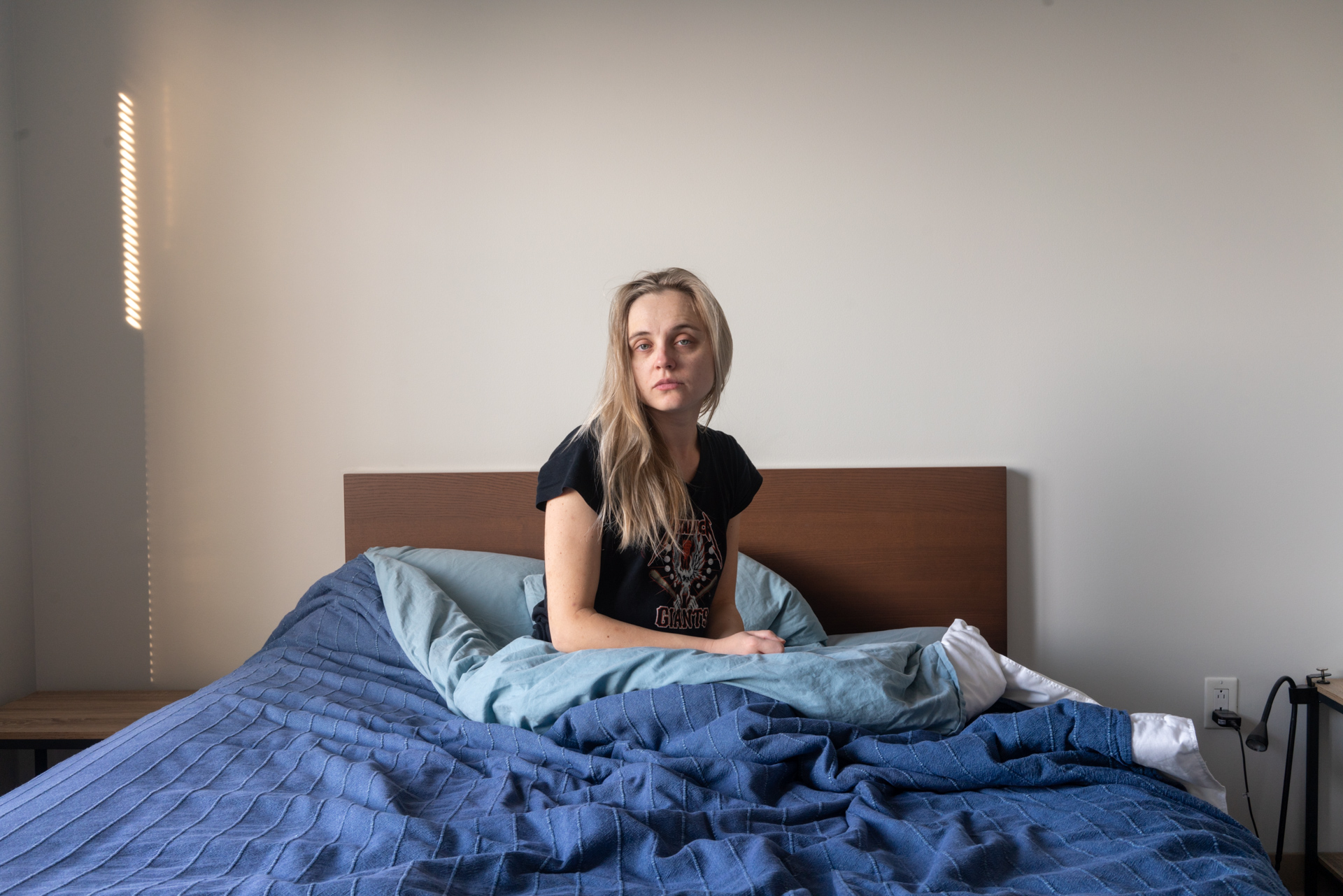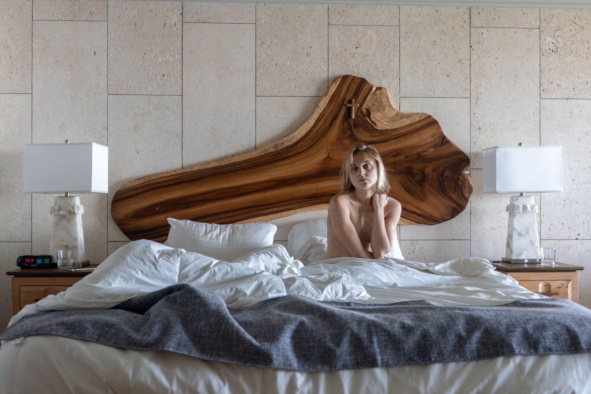 The project originates in a moment of profound rupture. As Nosenko recounts, Beds began after she left Moscow. From that point forward, the series functions as both a temporal marker and a record of displacement. Bedrooms across countries and continents replace one another as shifting theatrical backdrops, while the artist’s body remains the sole constant within a landscape of instability. The changing environments underscore the fragility of contemporary existence shaped by migration, political upheaval, and emotional dislocation. Furniture, walls, and light transform into transient scenery for a performance of semi-intimacy, emphasizing the absence of a fixed home.