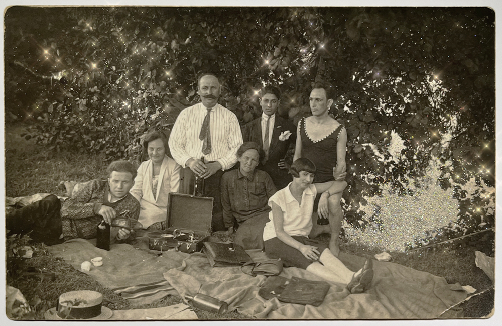Imagine a world where it doesn’t matter who you love, just that you love. An Impossibly Normal Life is an artifact from another world, a more loving, inclusive one where who you love is of little societal importance. This fictional story, centered on my imagined uncle’s idealized life, is created from collected vintage snapshots from around the world. Four years ago, my mother offhandedly mentioned that I may have had an uncle who was gay, but he died not long after I was born. Hearing this revelation for the first time, thirty years after I had struggled to come out to my disapproving family, sent my mind spinning. The thought of a family member so close to me going through some of the same things I did inspired me to create this story. Instead of returning to the hiding or shame of most pre-1970’s queer stories, a reality of how our world was (and in some cases, still is), I have created an alternate history where fluidity in gender and sexuality is the societal norm. Re-contexualizing found photographs and creating a new narrative, my Uncle Ken’s life becomes full of acceptance, friends and love, and shows anyone struggling with identity today, and those around them, the joy of what could have been and can still be. – Matthew Finley