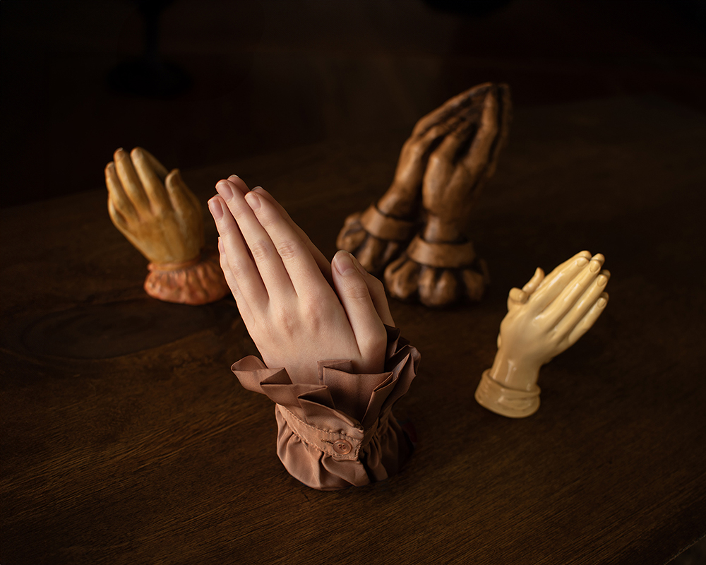 I love Etsy and eBay for sourcing props. Sometimes just a simple search on one of those sights can lead me to items that spark an idea. There’s also a local place that has remnants of fabric and wallpaper. I create sets in parts of my home that have the lighting I seek, so I need to modify those areas with carpets and backdrops to craft a different world.
