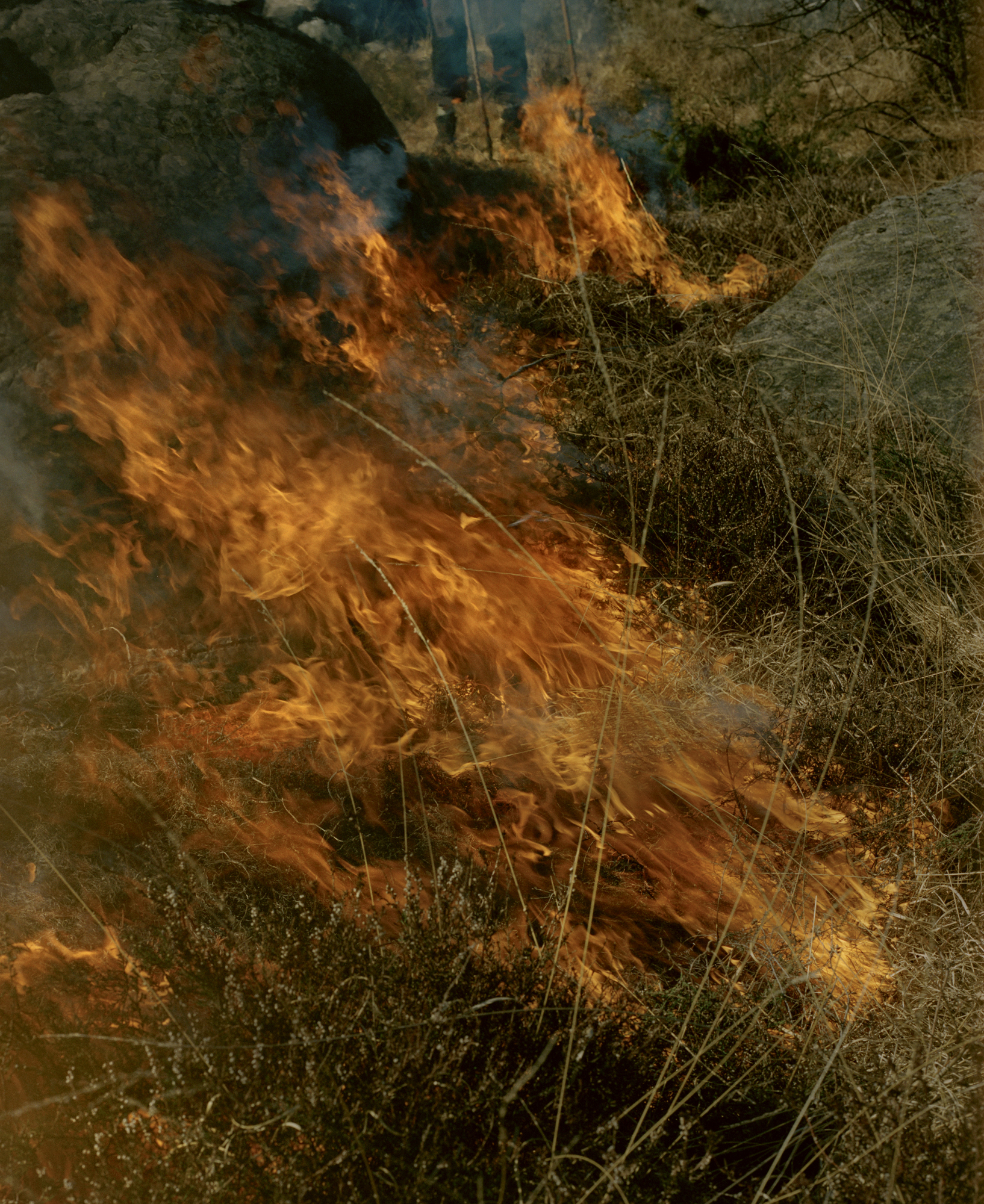 Gertrud has distinct chapters, and I think of it as having three different strands, or times that could coexist, a bit like in a film. One of them is the black and white work, which goes throughout the book and gets interrupted twice. The first interruption is with the color section made up of images of fire, which is supposed to represent the material idea of fire and the connection it has to history, you know, with the executions, but also to the bonfire, oral history, storytelling and to the spreading of the rumors. It’s also the only part of the book where there are men. I think of time in this section to be fast.