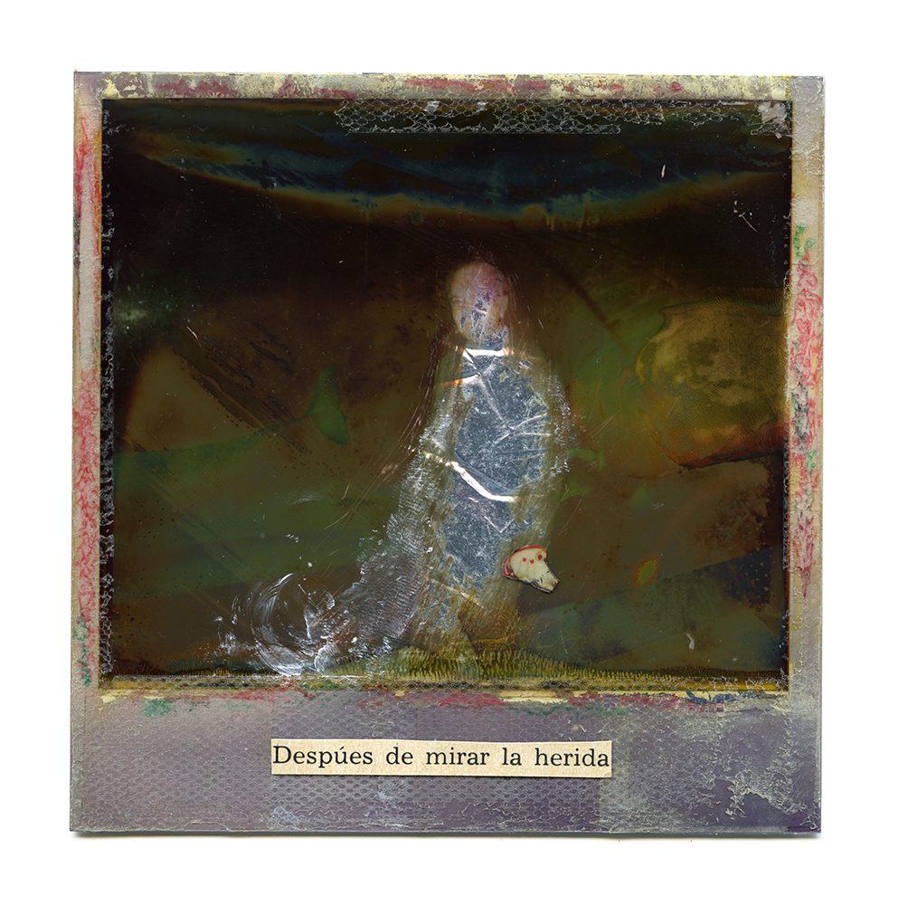 “Beyond pain” is a series in which I intervened Polaroid photographs through a process of destruction and reconstruction: the original images are altered with boiling water, removing layers to preserve only significant fragments. Over these vestiges, I superimpose other photographs, watercolors, and brief texts, transforming each piece into a visual palimpsest where the ephemeral and the perpetual coexist. The process -which oscillates between analog and digital– begins with the physical manipulation of the Polaroid and culminates in its digitalization, allowing for its reproduction at multiple scales without losing the organic texture of the manual process. This technical duality reflects the conceptual core of the work: an exploration of life, death, and the transience of human bonds, where what persists converse on the same surface. The layers of intervened images, along with the added verses, act as metaphors for selective memory; an attempt to rescue the essence of pain in order to transcend it. The result is pieces that, although digitalized, retain the tactile imprint of the irreversible, questioning the permanence of what we decide to keep or let go.