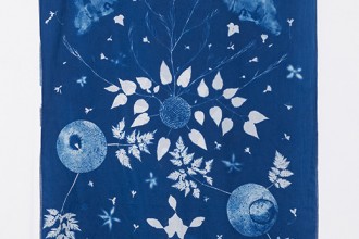 © Andrea Cote, “Plexus”, 2024, Cyanotype on repurposed cotton sheet, 63”x 30”