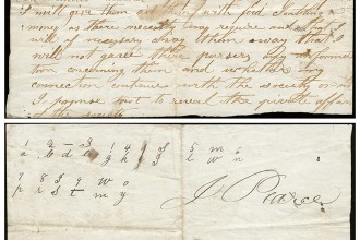 © Jeanine Michna-Bales, Front and Back of Signed Underground Railroad Pledge that has a code and the signature of J. Pearce.